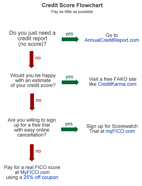 6. Wonderful flow chart. Been looking for something like this for years haha. i have personally used KreditKarma and really like it. i did notice a bump down on my score due to opening new credit cards. Hopefully this goes back up soon. Good post Jonathan.