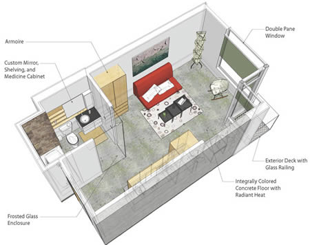 Yes, it’s just like a hotel room. A friend of mine once had an apartment of 400 sq. ft. in NYC and it also felt like a hotel room. Here you are definitely trading comfort for convenience. I would live further from work and have more room any day. Even if I was single, I would like to stay home sometimes and it would be too confining. Of course, you wouldn’t accumulate junk because you couldn’t and that’s great. Otherwise, I don’t see any upside.