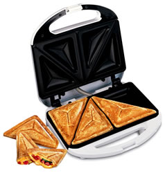 you can make great hot sandwiches in a toaster oven (which is MUCH more universal in its uses) or with a frying pan and a flat, metal stockpot lid.