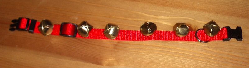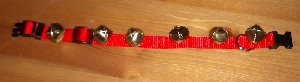 Prototype #3: Jingle Bell collar. Give your pooch (or kitty I suppose) some holiday spirit. Working on matching Santa hat. May drive your dog nuts initially!
