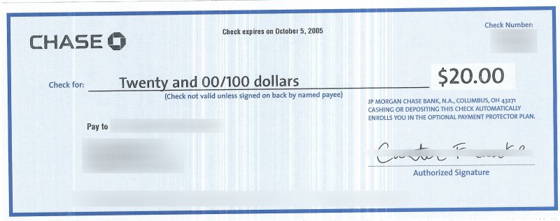 2. I received a check of $15.00 as a reward for a 30 day trial of Chase Fraud Protector Plan. (7.99 per month). Chase had added this fee into any Chase account that carries its balance.